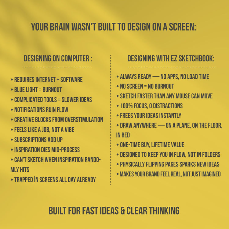 - Don’t need to know Photoshop or Illustrator — just flip open and sketch.